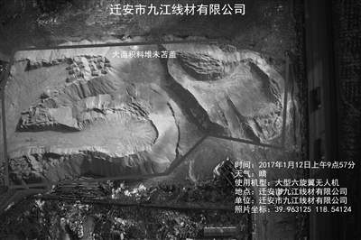 “你看,這張影像圖拍攝的時(shí)間是1月14日9時(shí)12分,地點(diǎn)是唐山市古冶區(qū)匯豐煉焦制氣有限公司廠區(qū),還有精確的經(jīng)緯坐標(biāo),發(fā)現(xiàn)的問題是廠區(qū)內(nèi)存在多個(gè)污 水坑,圖片中劃紅線的范圍就是污水坑;這張是1月12日上午9時(shí)57分無人機(jī)拍攝到的,遷安市九江線材有限公司廠區(qū)內(nèi)大面積料堆未苫蓋……”采訪中,李新 義向記者展示了多張無人機(jī)拍攝的照片,每張照片上都清楚地記錄了拍攝時(shí)間、地點(diǎn)、天氣狀況、使用機(jī)型、照片坐標(biāo),并用紅色線條標(biāo)注環(huán)境違法行為。